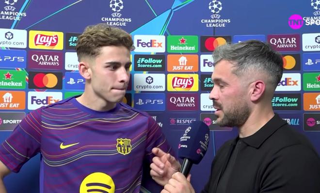 在巴萨主场7-2大胜纽卡斯尔的欧冠1/8决赛中,费尔明为球队打入第四球,赛后他接受了TNT体育墨西哥站的采访。