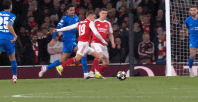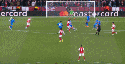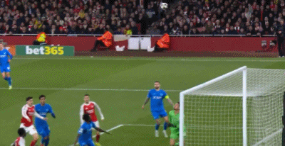第8分钟,萨卡开出角球,加布里埃尔顶在肩膀上出了底线
