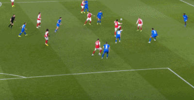 第21分钟,加布里埃尔头球攻门,皮球稍稍顶高