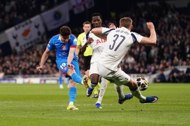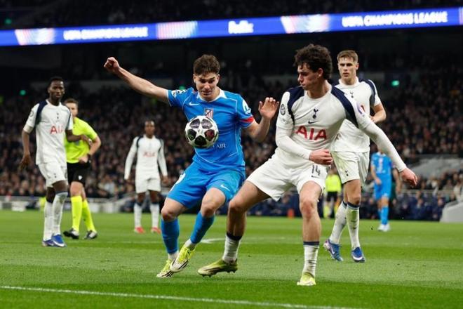 此役主场迎战马竞,热刺虽然首回合大比分落后但依旧主力尽出。开场30分钟,特尔传中,穆阿尼无人盯防情况下头球破门,热刺1-0先声夺人。易边再战第47分钟,卢克曼反击中送出助攻,阿尔瓦雷斯转身爆射破门,马竞1-1扳平比分。5分钟后,哈维西蒙斯兜射破门帮助热刺再度反超,随后阿尔瓦雷斯角球助攻汉茨科前点头球破门再度追平。比赛进行到第90分钟,哈维西蒙斯成功造点并亲自主罚命中,热刺最终3-2获胜,但总比分5-7依然出局。