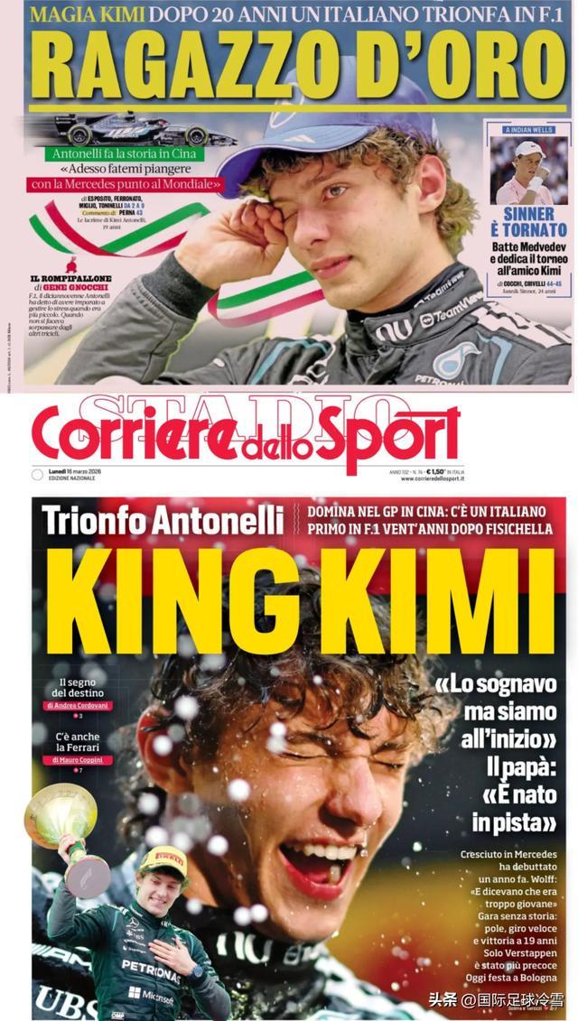 在红黑军输给拉齐奥后,国米反而扩大了领先优势。一些老铁想看看这一次各大意媒会不会为24小时前的炒作而羞愧。让大家失望了,三大体育报的头版都是……赛车。没法黑国米了,那就不谈足球了!还是这些人会玩。
