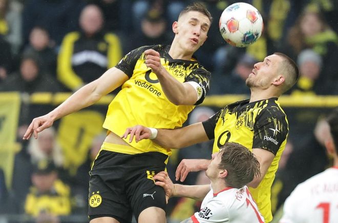 本场比赛多特蒙德排出了3421阵型。拜尔顶在最前面。萨比策和阿德耶米在他身后。瑞尔森、乔布-贝林厄姆、恩梅加和丹尼尔-斯文松4中场联袂出击。卢卡-雷贾尼、安东和施洛特贝克3后卫首发出战。科贝尔担任首发门将。吉拉西、厄兹詹和丘库埃梅卡坐在替补席待命。本塞拜尼停赛。