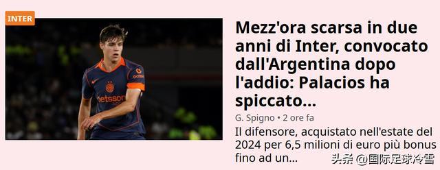 有趣的是,粉红报纸一边在批评国米没有给帕拉西奥斯这位阿根廷新国脚以信任,对年轻球员缺乏耐心,这是不对的;另一边,对同样是年轻新星的博尼,不过几场没进球,意媒就连番恶语抨击,好一顿疯狂输出,完美体现出了什么叫做“双标”。